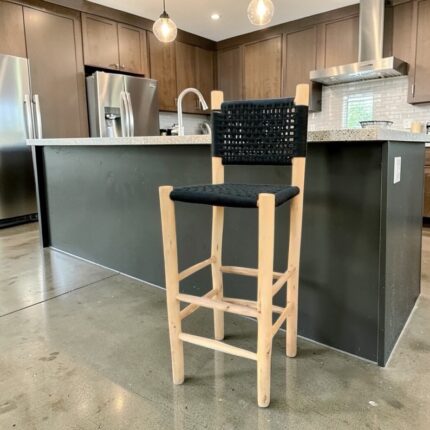 Handwoven Bar Stools – Natural Cord & Stained Wood