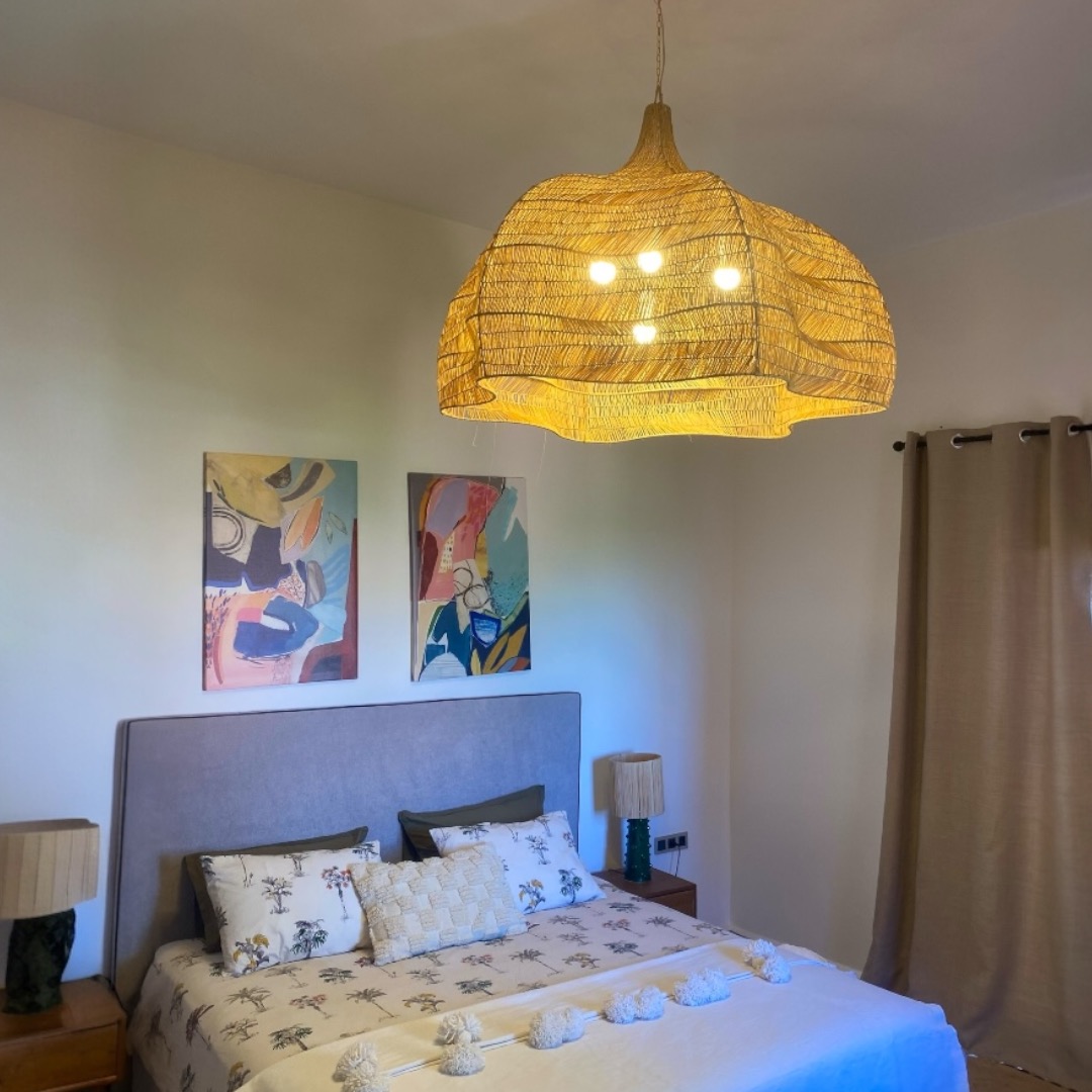 Bring authentic craftsmanship to your space with our handmade raffia pendant light. Carefully woven by Moroccan artisans– making it a true statement piece.
